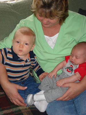 The very first week we were home we had lots of visitors, Mimi and Popo Stary stayed with us for the first week leaving to go home to OH on 9/15 and we missed them very much when they left....they helped keep us all sane a little. Uncle Richard, Cousin Steven, Aunt Barbara Williams, Katie & Ethan, Aunt Betty Jane, Jordan and little Ryan all visited that first week home. We were very busy with showing off the little one. We finally got up the courage to have our first outing, I needed to go to the bank and wanted to buy a book "Your Baby's First Year Week by Week". So we headed off to Barnes & Nobles where I used the sling for Andrew while I looked around a little. It was a successful outing. Our next outing was another pediatrician appointment and Wal-Mart. Great Grandma Stayer went along with us to help me out a little. Andrew was up this appt to 7lbs 10 oz from the previous week and the doctor was very happy with this. Andrew eats like a champ so I am not surprised about his weight gain. I would love to know what he weighs now.